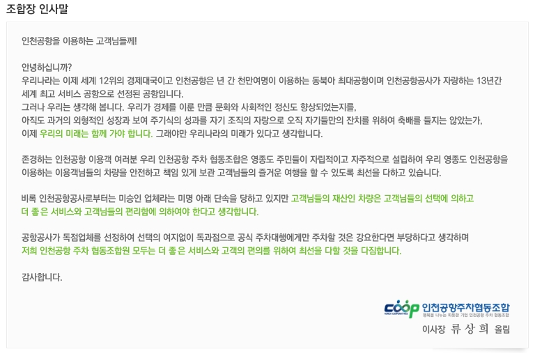 안전하고 믿을수 있는 인천공항 주차협동조합입니다..